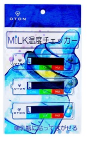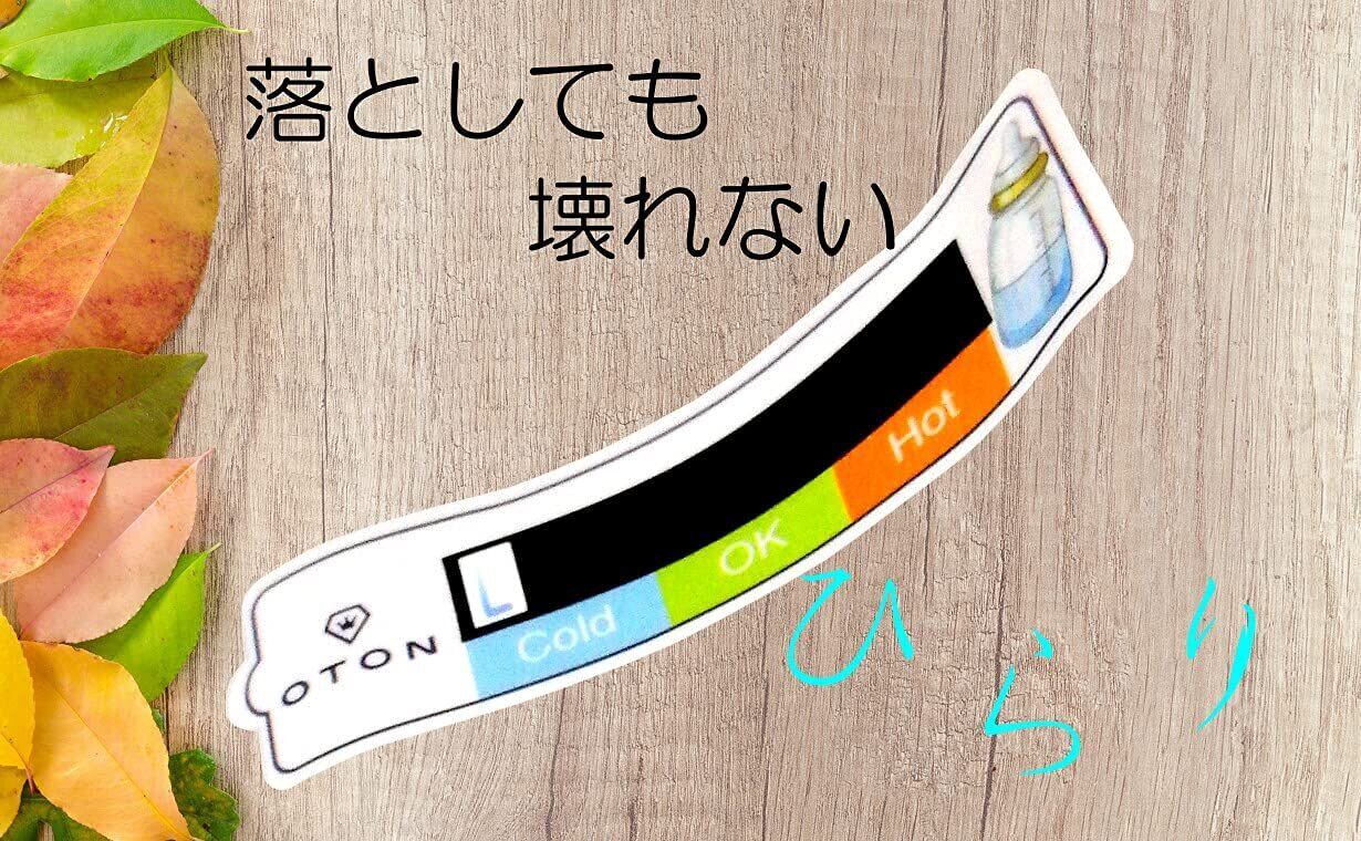 「『OTON 哺乳瓶温度計 MILK温度チェッカー』は、赤ちゃんの飲み物の温度を簡単に確認できる便利なアイテムです!シールタイプで、赤ちゃんとの外出の際にも活躍します。」