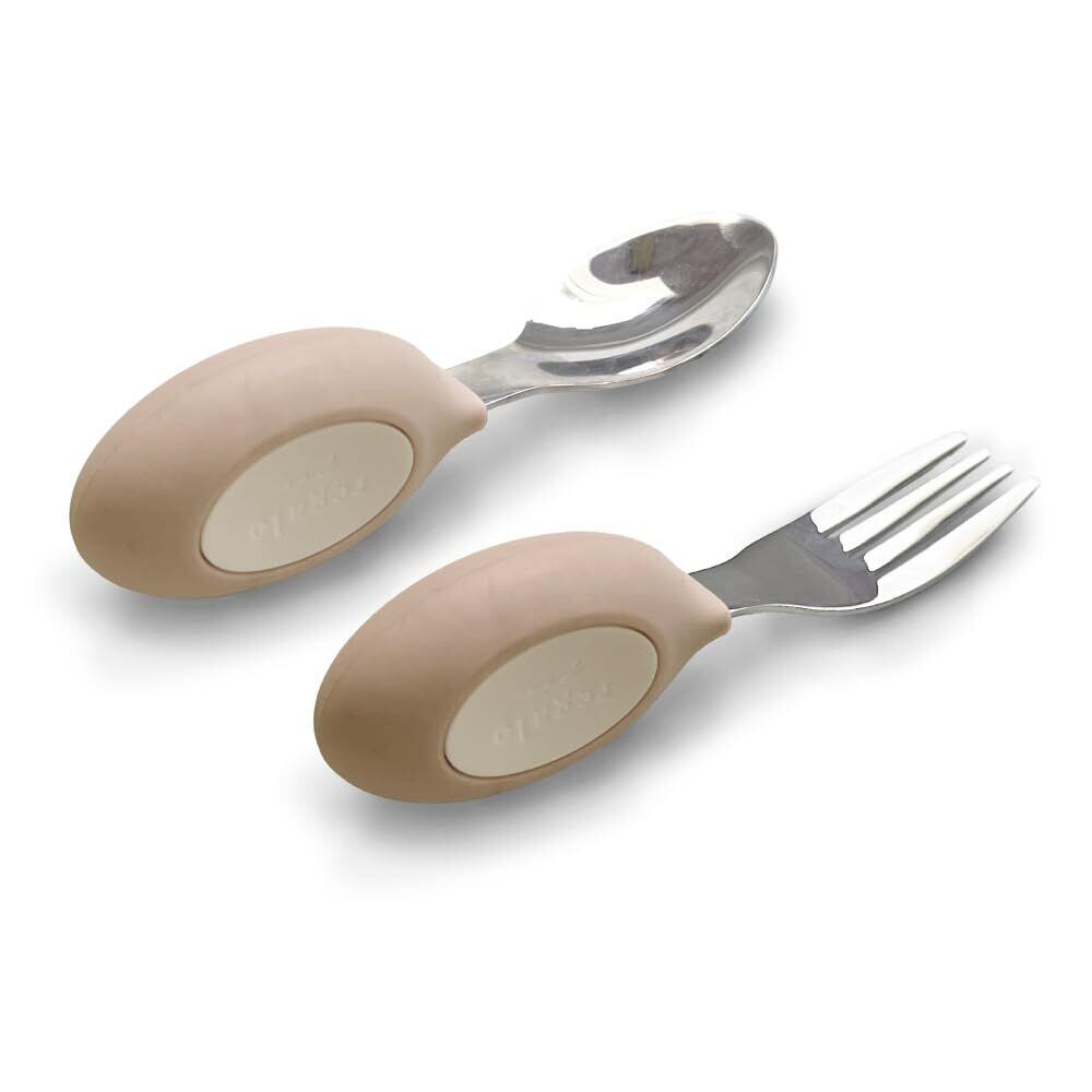 「正しい持ち方を学べるデザインが特徴です。このカトラリーセットを使うことで、自然と食事のマナーや自立心を育む手助けをします。成長過程にぴったりのアイテムです!」