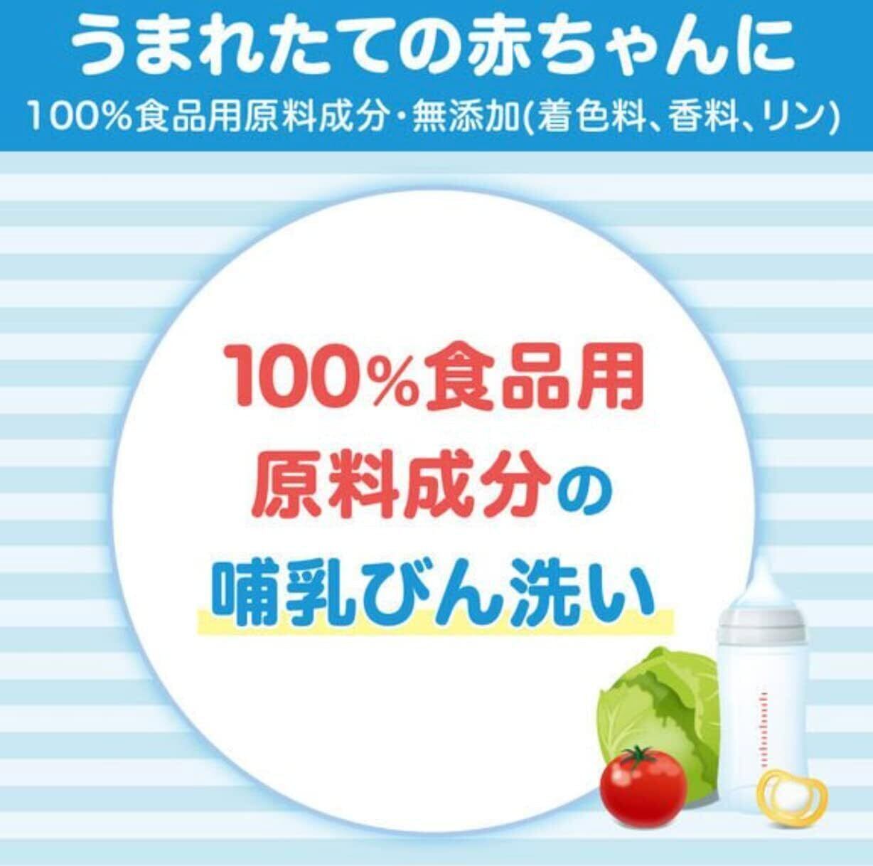 「『ピジョン 哺乳びん洗い』は、赤ちゃんの大切な哺乳瓶を清潔に保つために設計された洗浄剤です!100%食品用原料成分を使用しているため、安心して使用できます。」