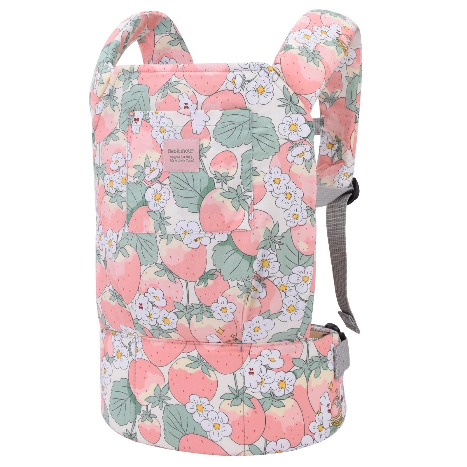 【ベビーアムール】Bebamour 抱っこ紐ミニ 人形用抱っこひも ドールキャリア 綿製 抱き方2way 人形用おせわパーツ ままごと 誕生日プレゼント(いちご)