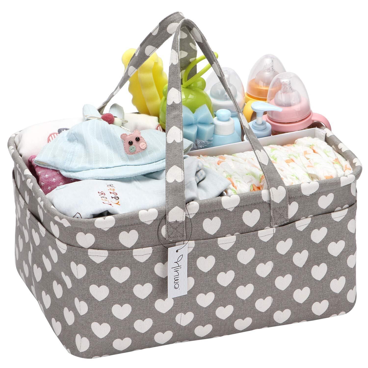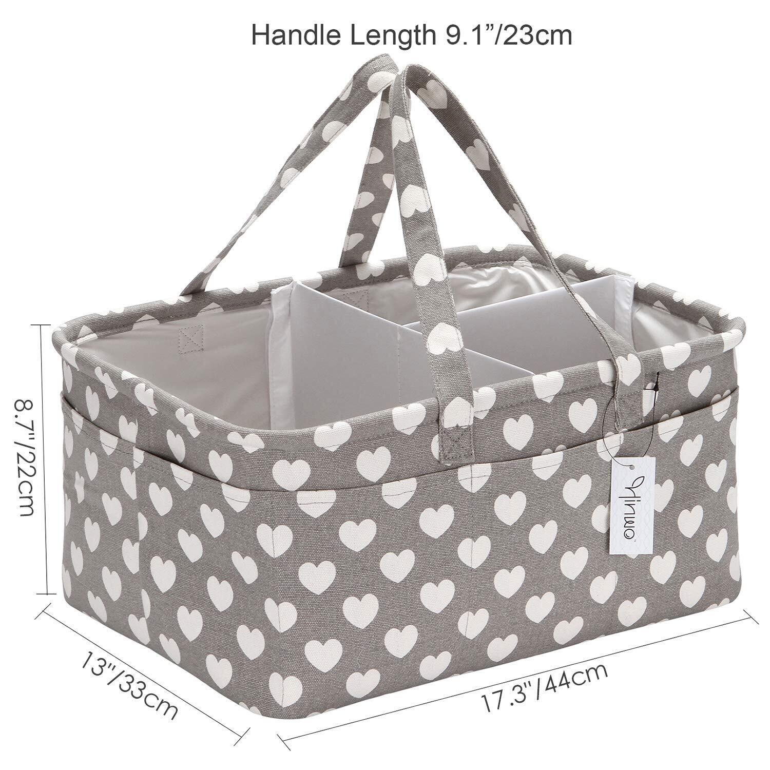 Hinwo おむつ収納 おむつバッグ おむつストッカー おむつポーチ オムツ入れ ベビー用品収納 収納ケース カゴ バッグ ボックス 折りたたみ 赤ちゃん 出産準備 出産祝い(グレー ハート)