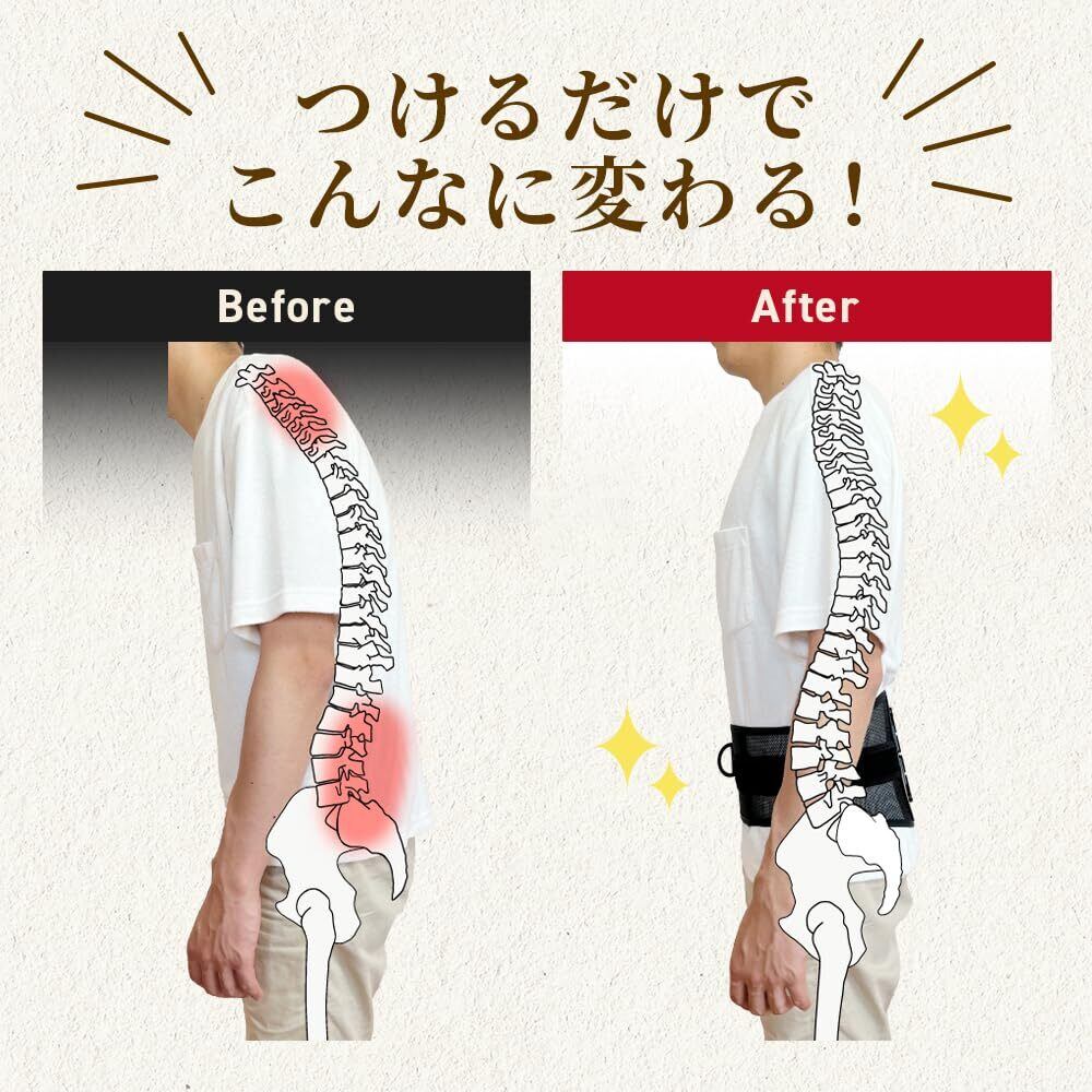 「この骨盤ベルトは、正しい姿勢を保ち、腰部の負担を軽減します。日常生活や仕事中に感じる腰の痛みをサポートし、快適な動きを実現します!」