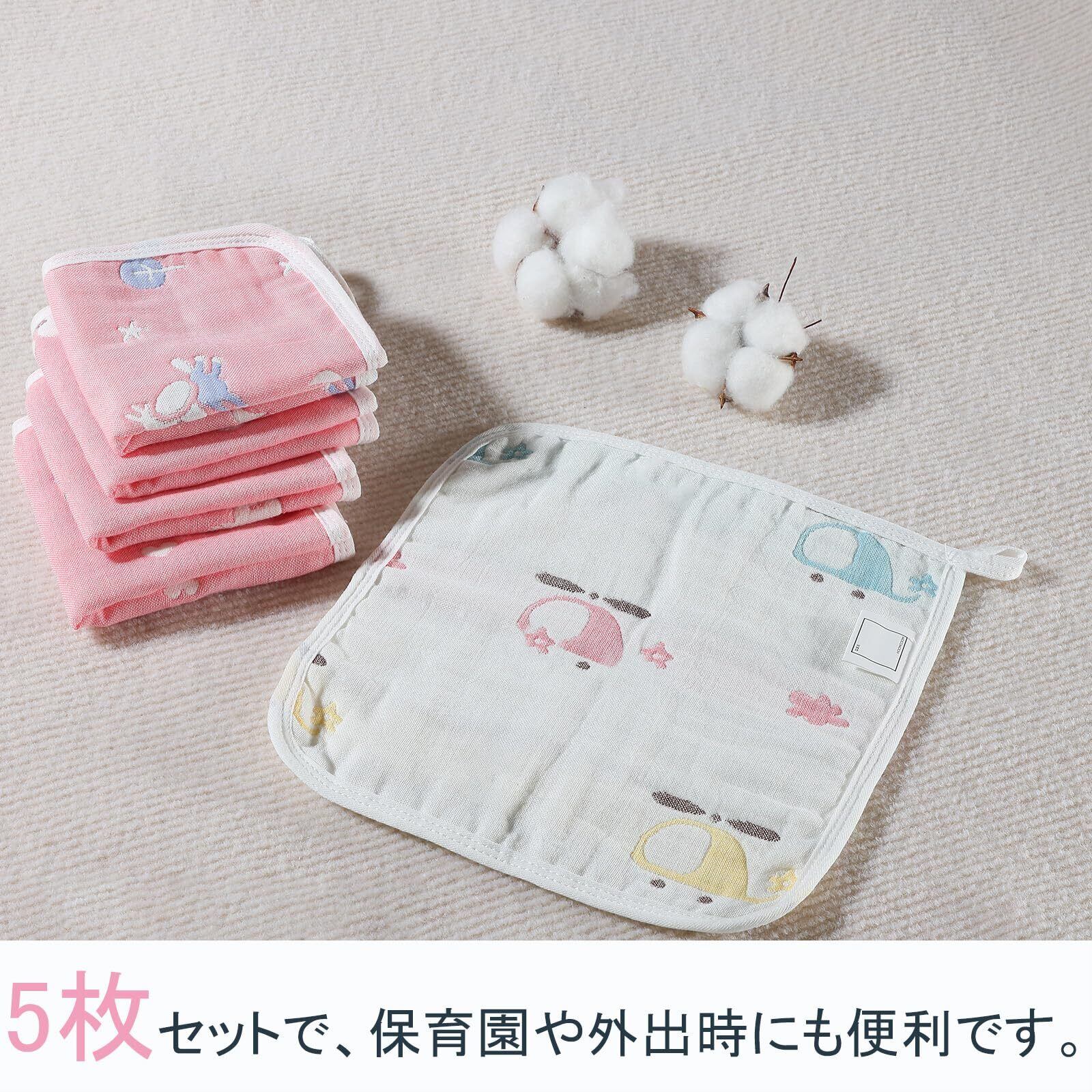 【特価セール】HOOMCOOM ガーゼハンカチ ベビー 6層 ガーゼタオル 赤ちゃん ループ付き 名前を書ける 保育園用 綿100% 25x25cm 5枚セット ピンク