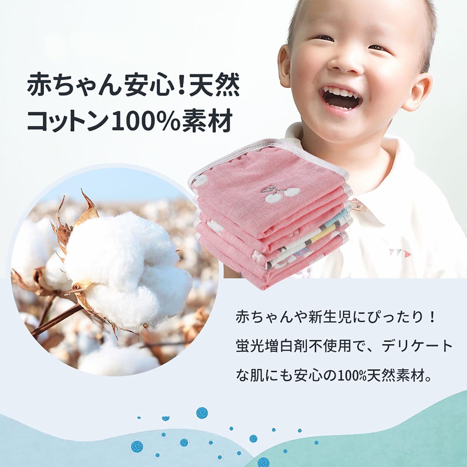 「100%綿を使用していますので、化学物質を含まず、赤ちゃんが触れても安心です。気になる敏感肌にも優しい、安全設計で毎日使用するのにぴったりです。」