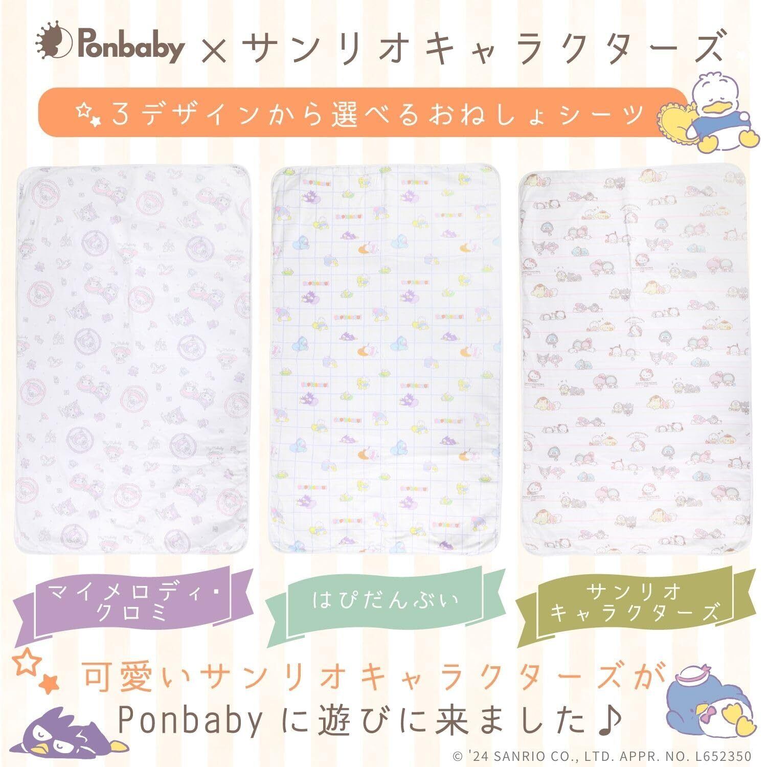 【Ponbaby×サンリオキャラクターズ】可愛いサンリオキャラクターズがPonbabyベビーおねしょシーツに登場 マイメロディ&クロミ、はぴだんぶい、11人のキャラクターたちが集まったサンリオキャラクターズの3デザイン お揃いのデザインのベビー枕とおねしょシーツで寝る赤ちゃんの姿は可愛良いこと間違いなし!
