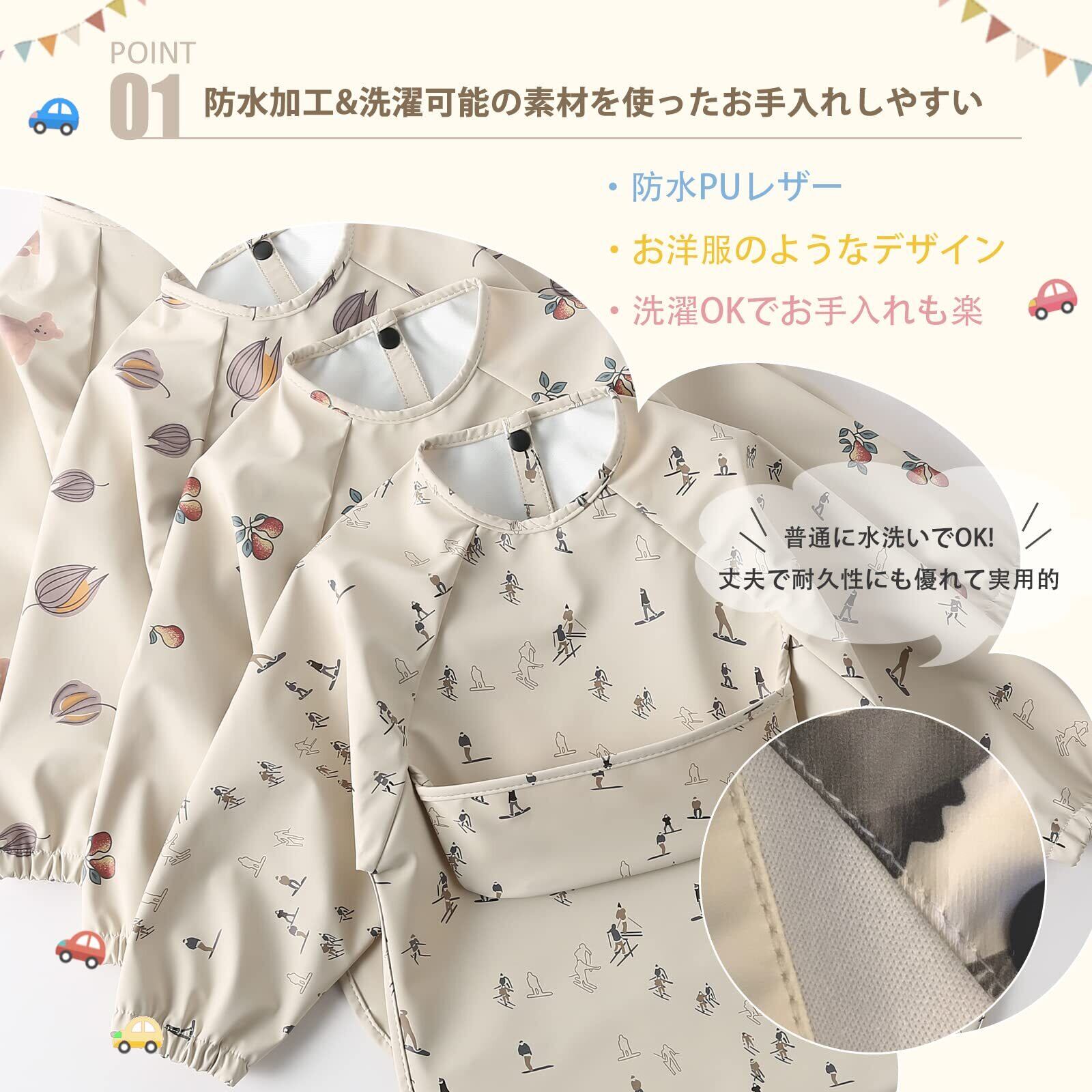 kalavika お食事エプロン ベビー 長袖 食事スタイ 袖付き 離乳食 エプロン 赤ちゃん 食事用エプロン 防水 スモック 子供 キッズ 女の子 男の子 0歳 1歳 2歳 3歳 4歳 5歳 保育園 入園準備 出産祝い