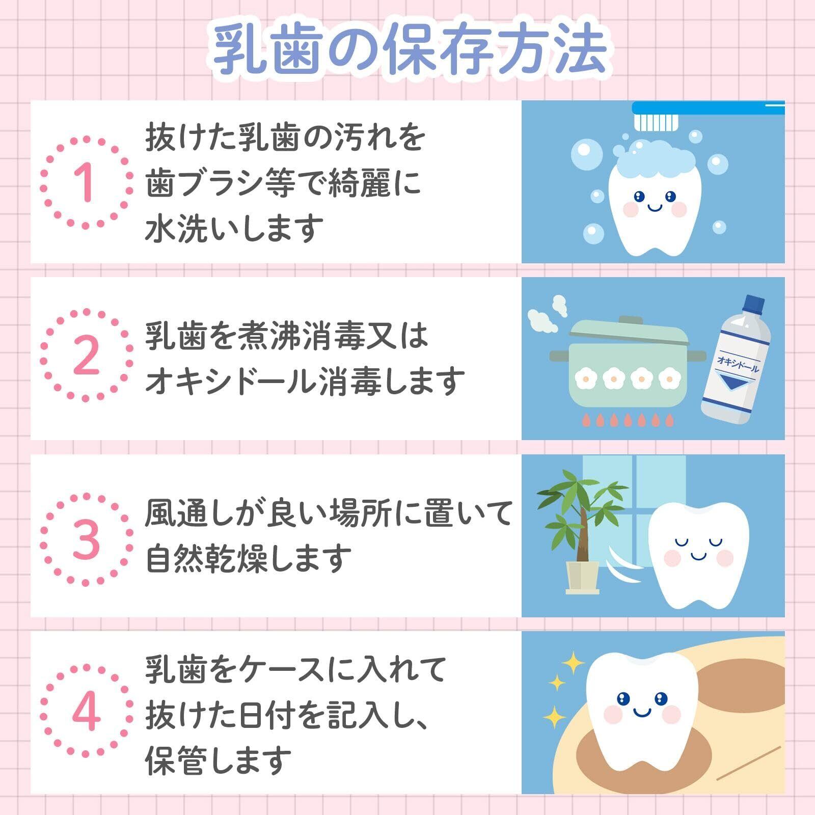 「乳歯を1本ずつ収納できるスペースを備えているため、整理整頓も簡単です。成長の思い出を大切に保管できる専用ケースは、家庭の宝物になります。」