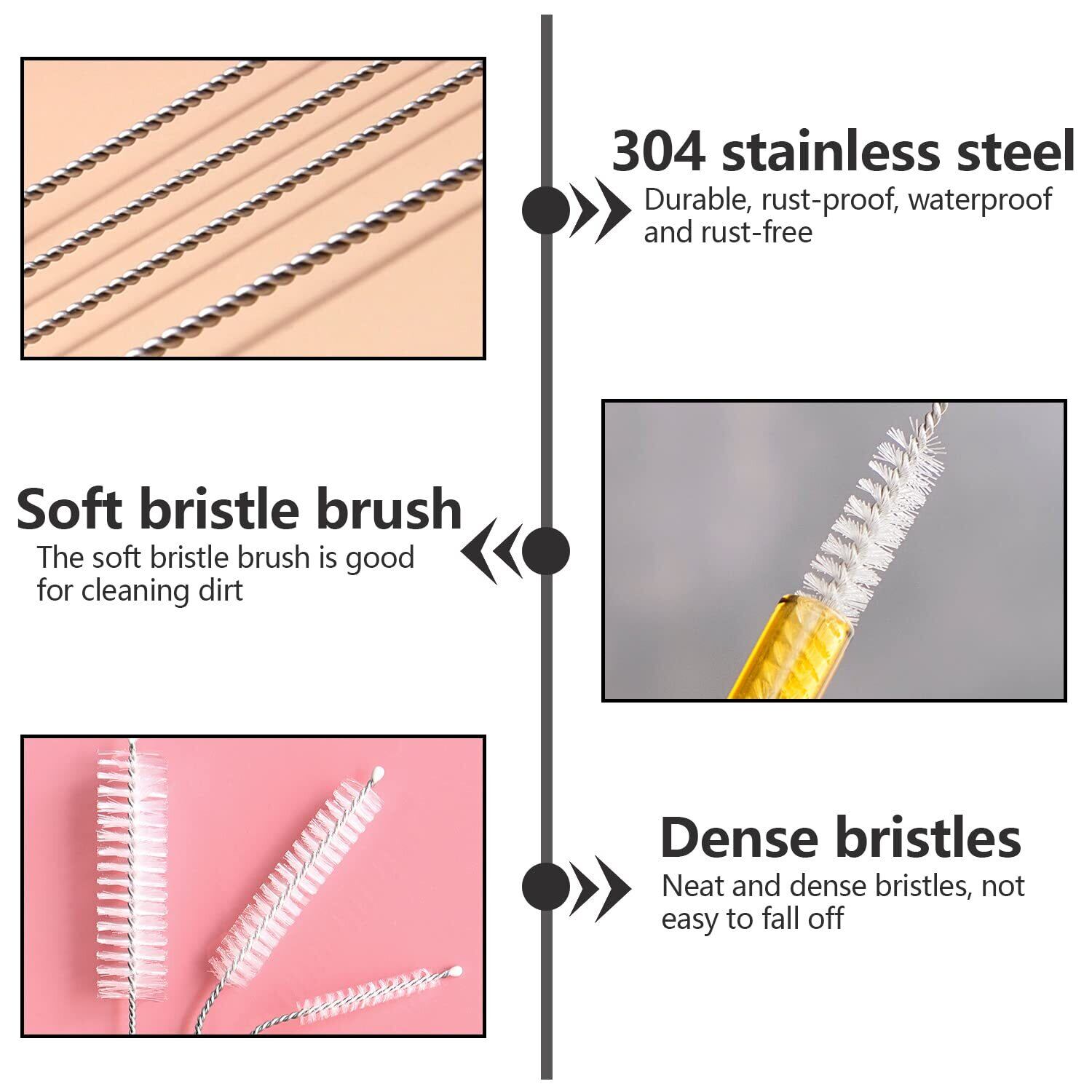 「極細ブラシが隙間に入り込み、頑固な汚れをしっかりと落とします。斜めカットのデザインは、あらゆるタイプのストローやホースにフィットし、効率良く洗浄が可能です!」