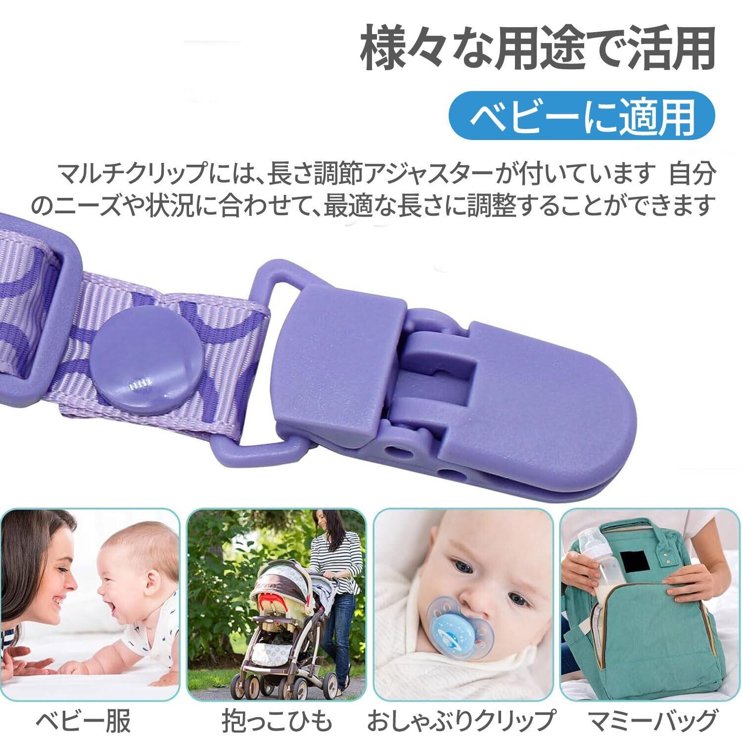 マルチクリップ シューズクリップ ベビーカー ラップクリップ ベビーカー用おもちゃクリップ 長さ調節可能抱っこ紐 ラップブランケット ブランケット エプロン風ハンドタオル 滑り止め ハンドタオル 転倒防止 2枚セット (水色の丸+紫色の丸)