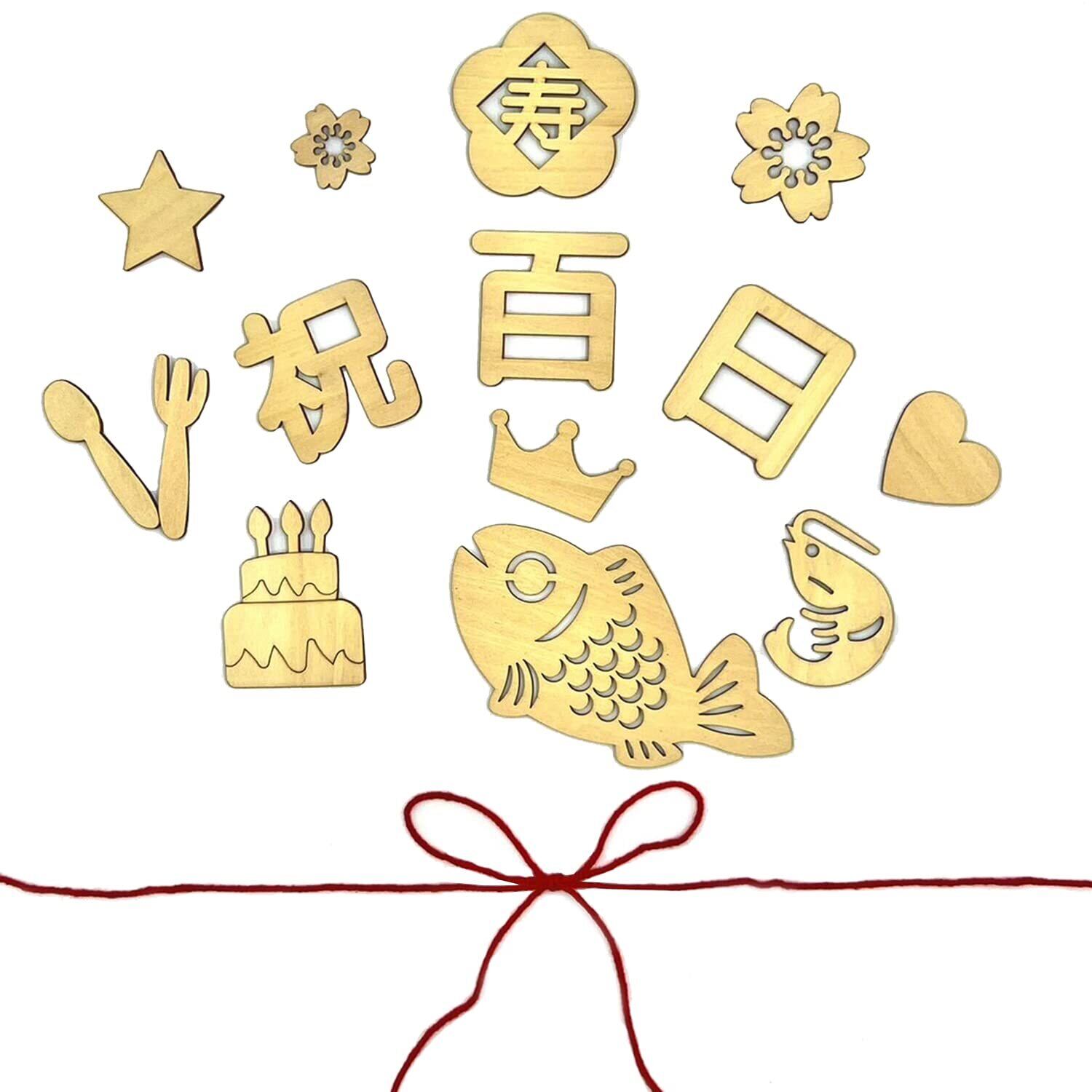 木製のバナー14点と赤紐1点の合計15点セットです! ご自宅で簡単にお食い初めおめでたい雰囲気を演出します 好きなアイテムを選んで並べるだけ!でアレンジは無限大 使い勝手の良いアイテムです