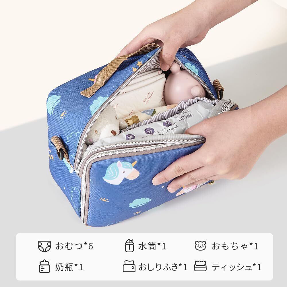 【特価セール】Sunveno 尿布収納バッグとおむつシートの2-in-1 おむつポーチ ベビー用品収納 肩掛けおむつポーチ 大容量 おむつ収納 小物入れ かわいい 旅行用ポーチ おしゃれ 出産祝い (ユニコーン おむつ替えシート)