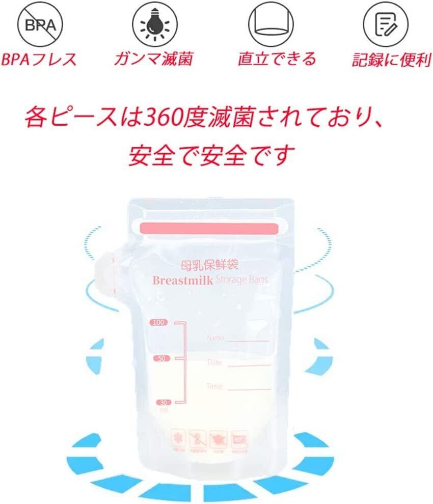 「厳しい衛生管理のもとで製造されたこのバッグで、母乳を無菌状態で保存できます。赤ちゃんに最高の母乳を届けられるためのサポートをします。」